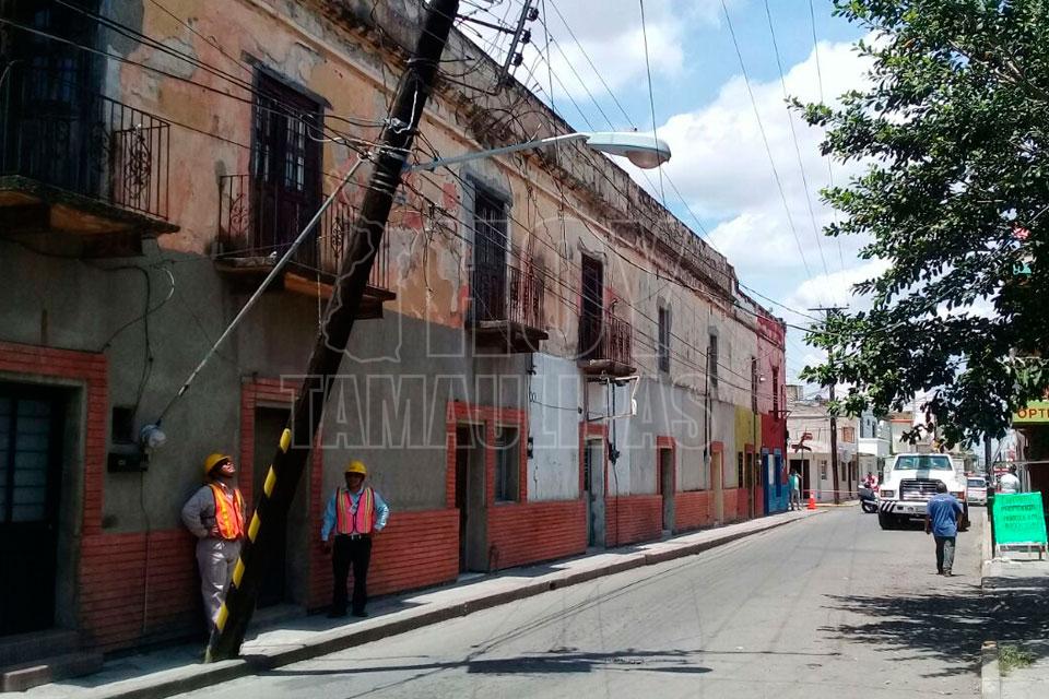 Atienden postes a punto de colapsar en centro de Ciudad Victoria