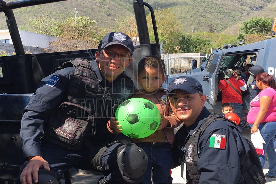 Policías federales llevan juguetes y dulces a niños de Kínder en Ciudad Victoria