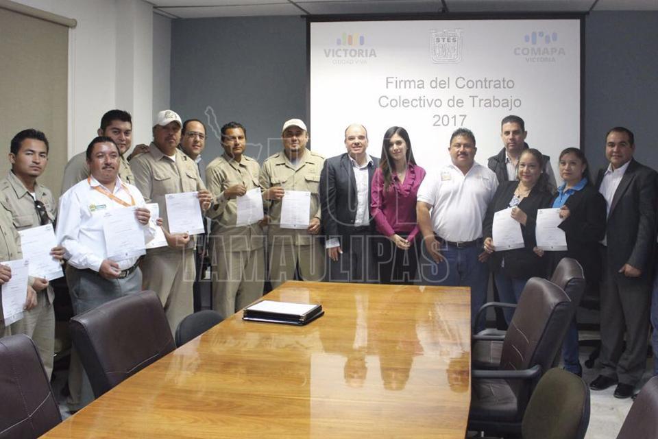 Firman contrato colectivo de trabajo en Comapa de Ciudad Victoria