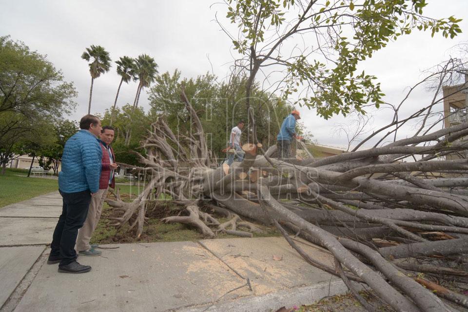 Retiran árbol caído en parque de Ciudad Victoria