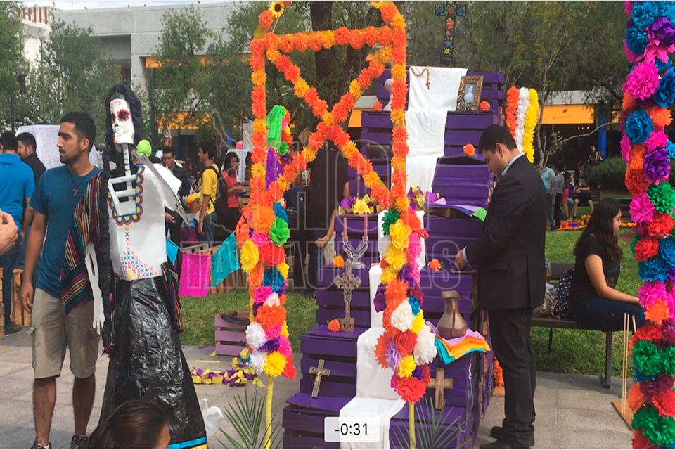 Alumnos de la UAT colocan altares de muertos en plaza de Ciudad Victoria