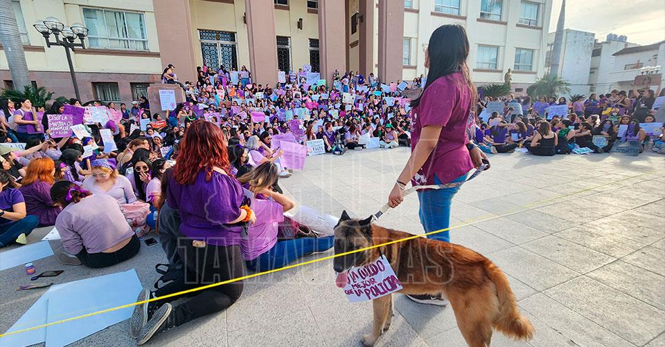 Se plantan mujeres en las escalinatas del Palacio de Gobierno en Victoria