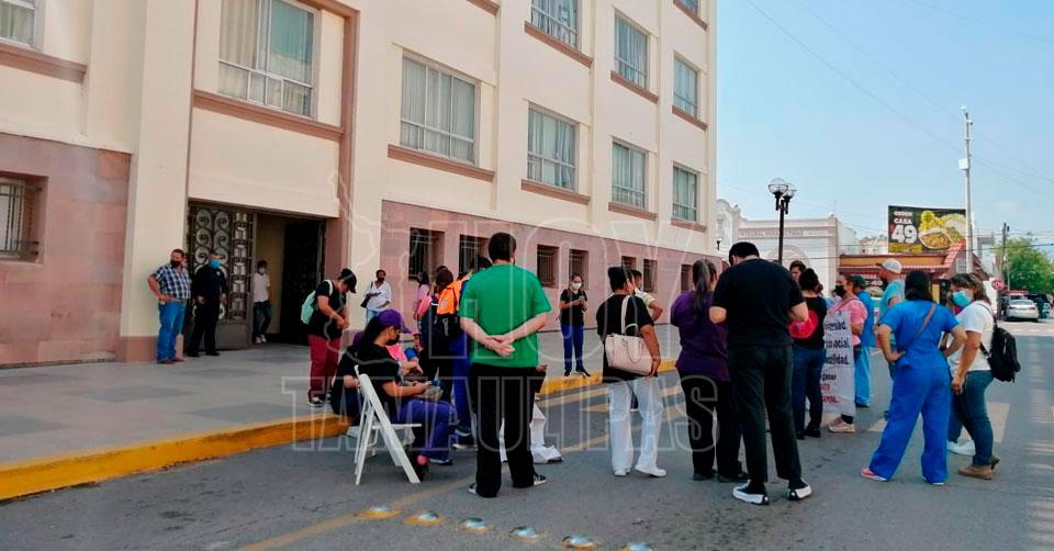Eventuales inician plantón frente a Palacio de Gobierno de Tamaulipas para reclamar plazas