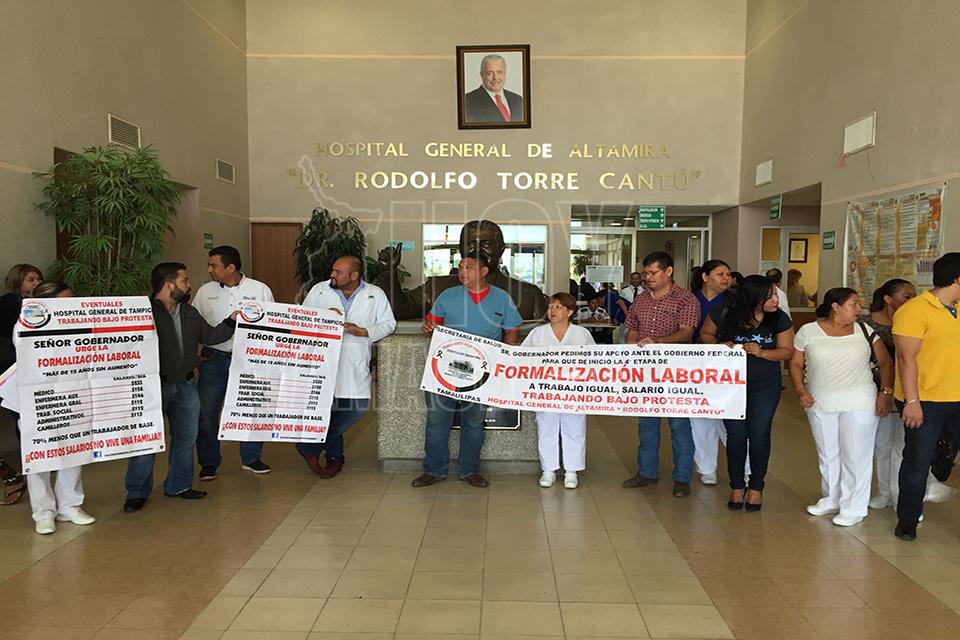 Protestan trabajadores eventuales del Hospital General de Altamira