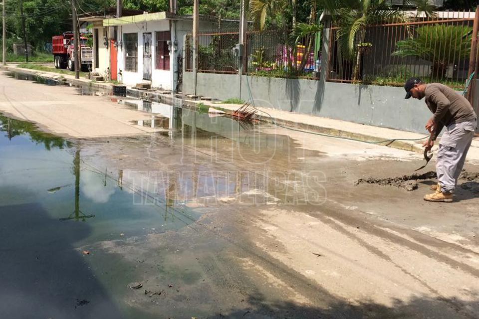 Molesta a residentes de la zona centro de Altamira fuga de aguas negras