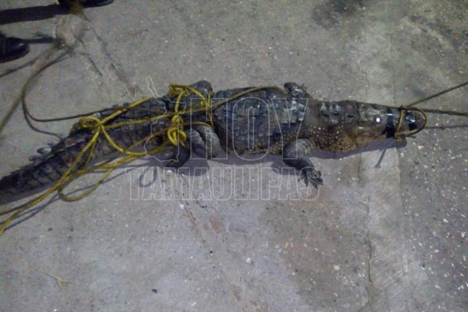 Capturan vecinos de Madero un cocodrilo de dos metros
