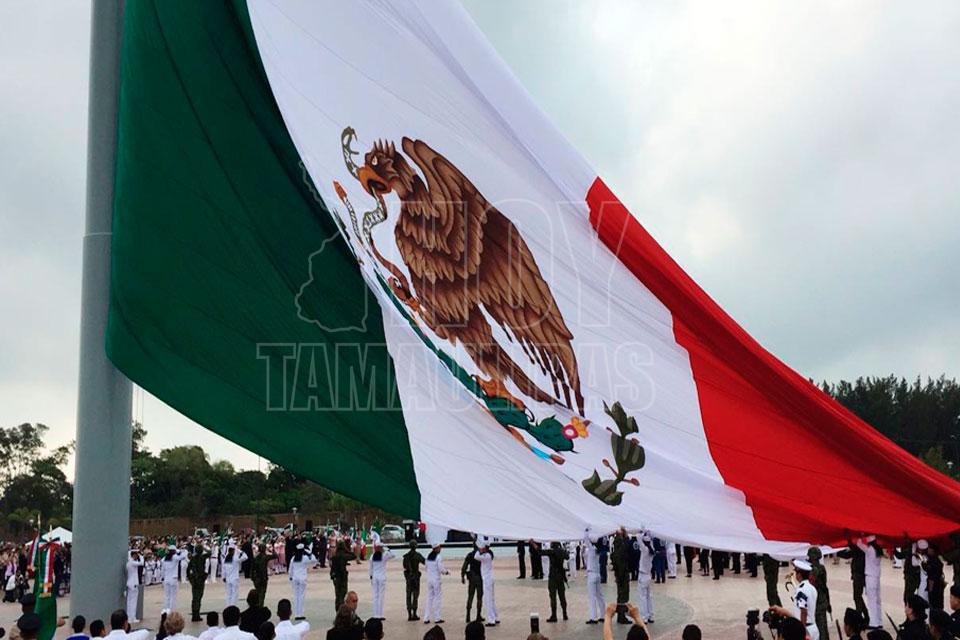 Izan bandera de México en Parque Bicentenario de Madero