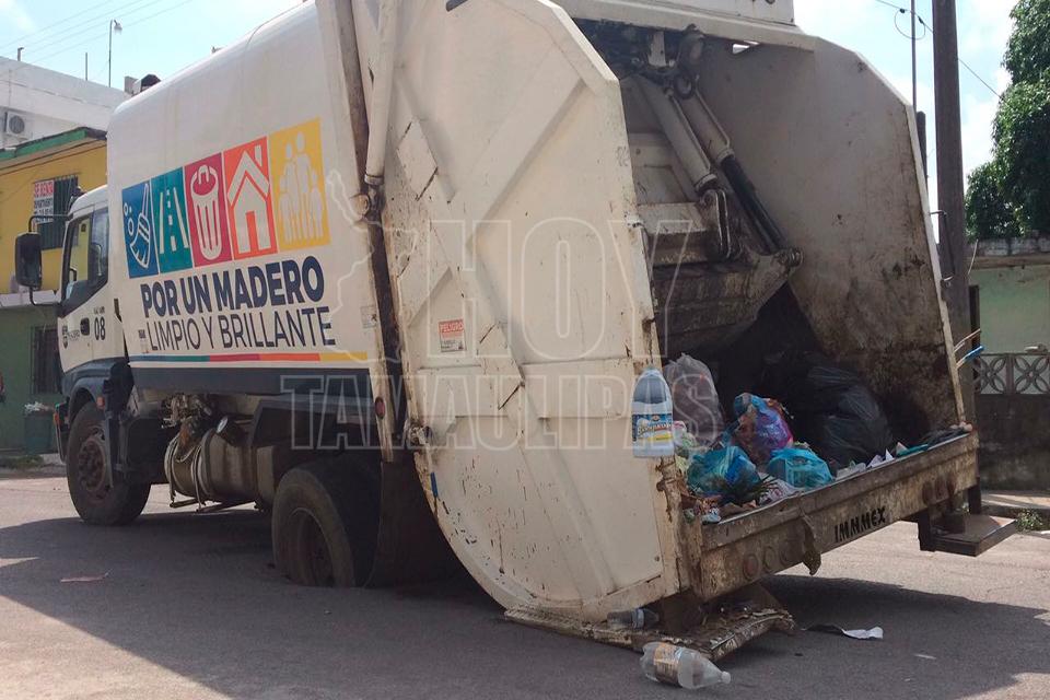 Cae a socavón camión recolector de basura en Madero