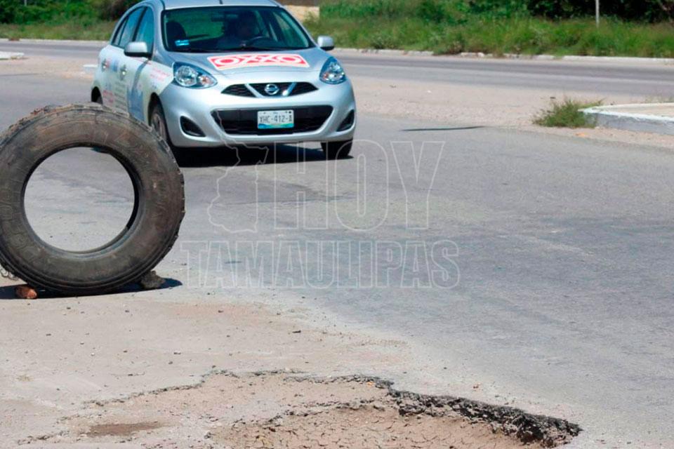 Con llantas tapan baches en el Corredor Urbano de Madero