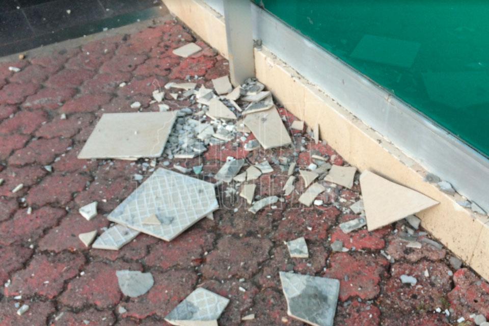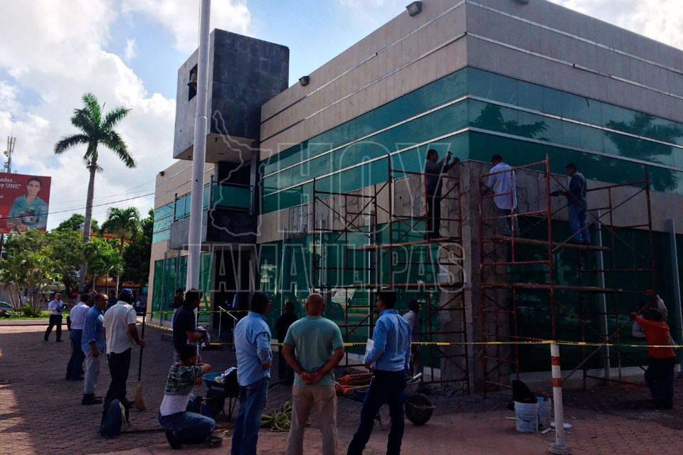 Retiran mosaicos de la fachada del Ayuntamiento de Madero por peligrosos