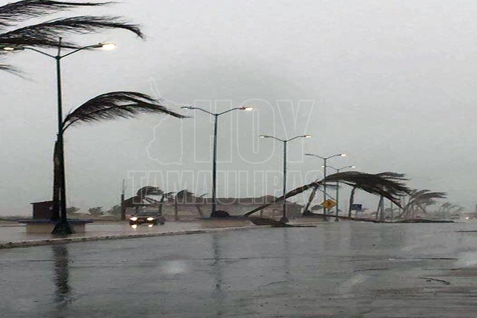 Palmeras caídas y estacionamientos inundados en Playa Miramar