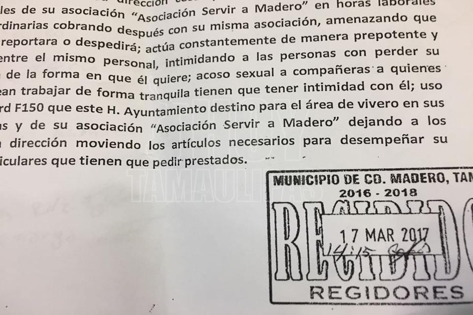 Denuncian acoso sexual a sub director de Parques y Jardines de Madero