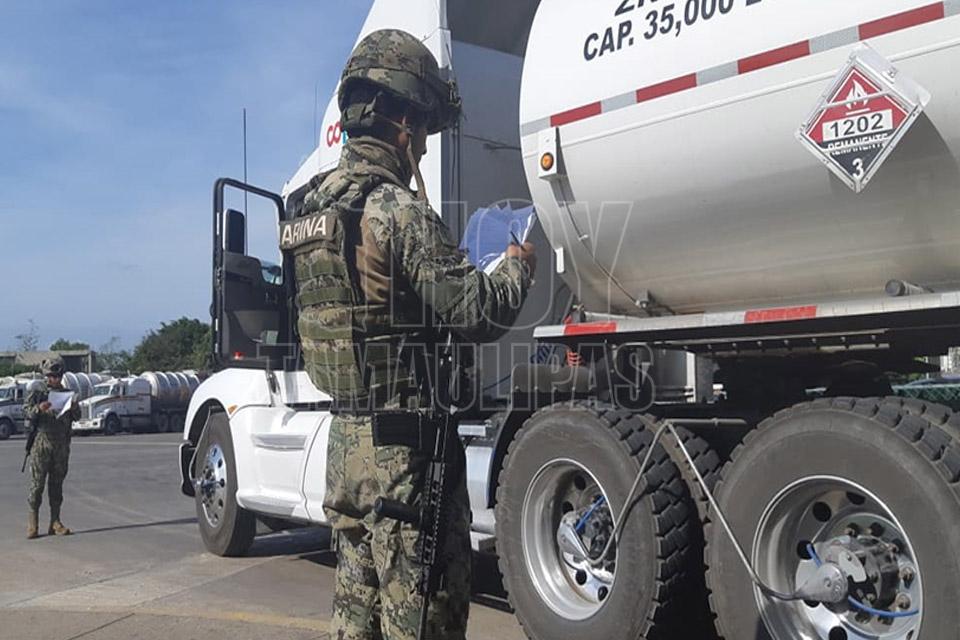 Fuerzas militares vigilan las instalaciones de Pemex en Madero