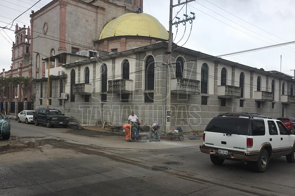 Supervisan obra de banquetas en Ciudad Madero