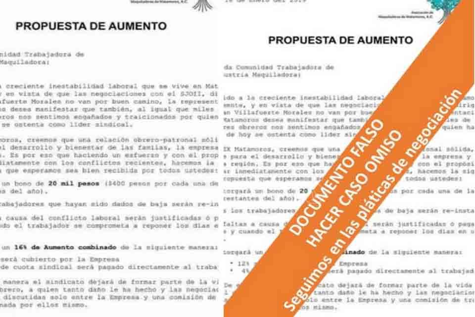Es falso documento que circula sobre acuerdo obrero-patronal en Matamoros
