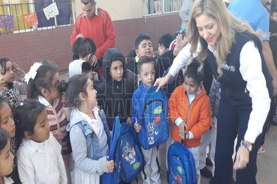 Continúa entrega de nuevas mochilas y paquetes de útiles en Matamoros