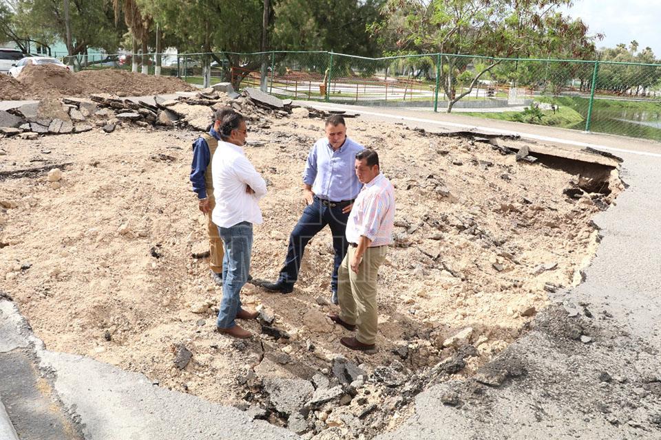 Tardarán semanas en rehabilitar socavón en Matamoros