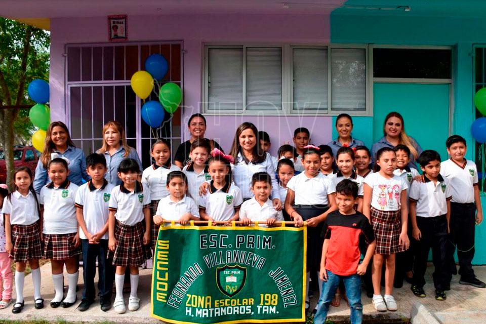 Inaugura diputada módulos de sanitarios en Primaria de Matamoros