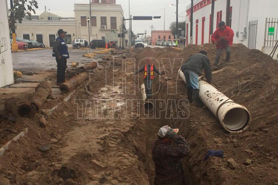 Cambian tubería de agua y drenaje en el centro de Matamoros