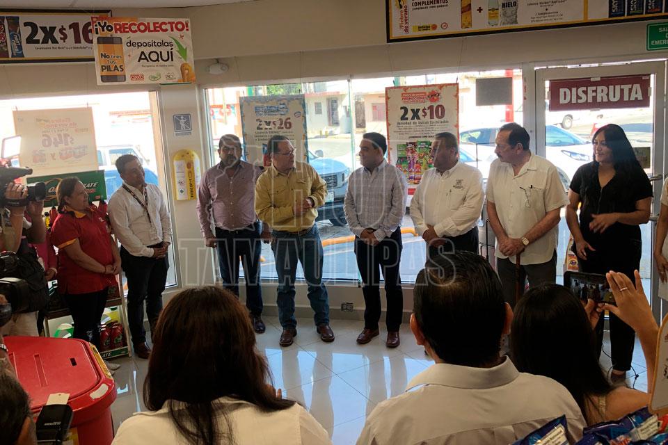 Colocan 25 contenedores de reciclaje de pilas en Oxxos de Matamoros