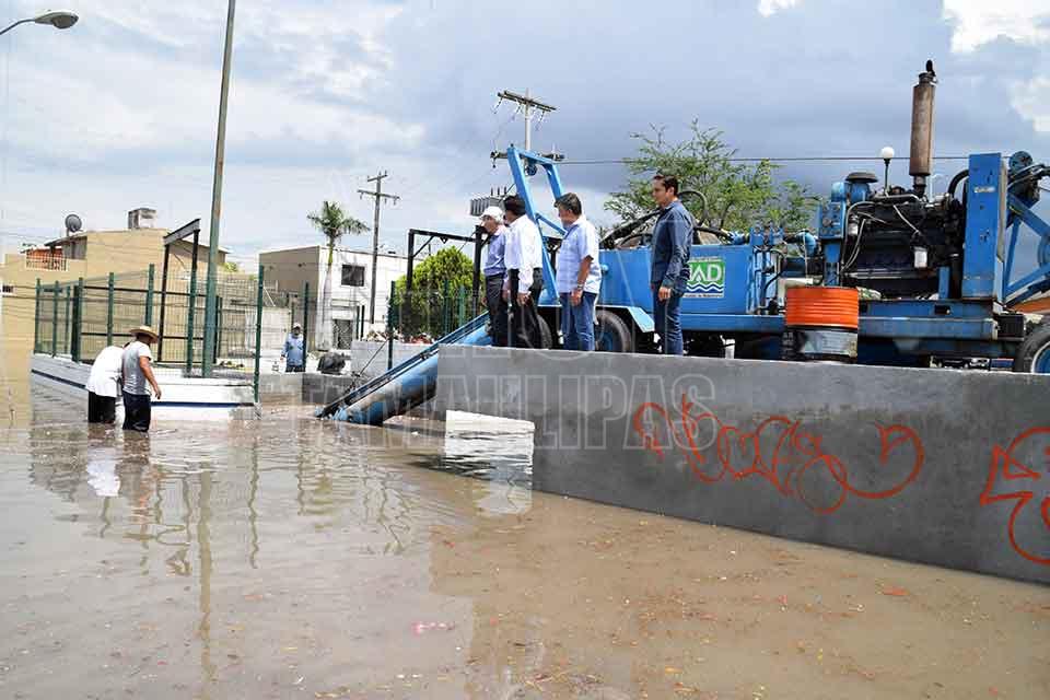 Dependencias municipales trabajan en desalojo de agua en colonias de Matamoros