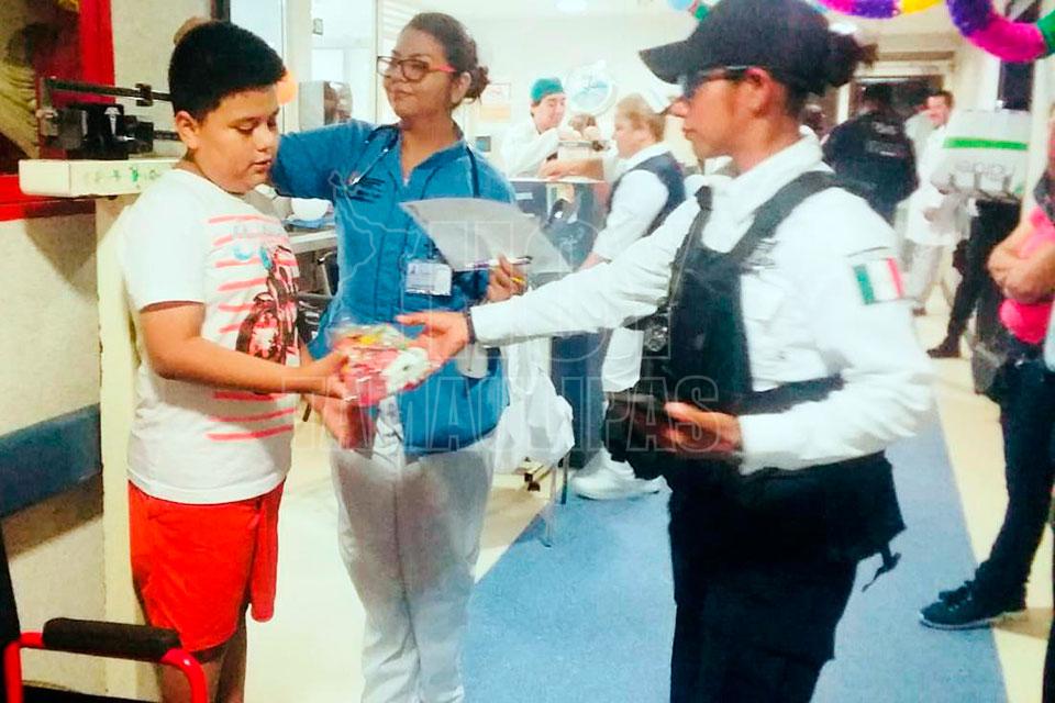 Llevan policías comida y regalos a niños hospitalizados en Matamoros