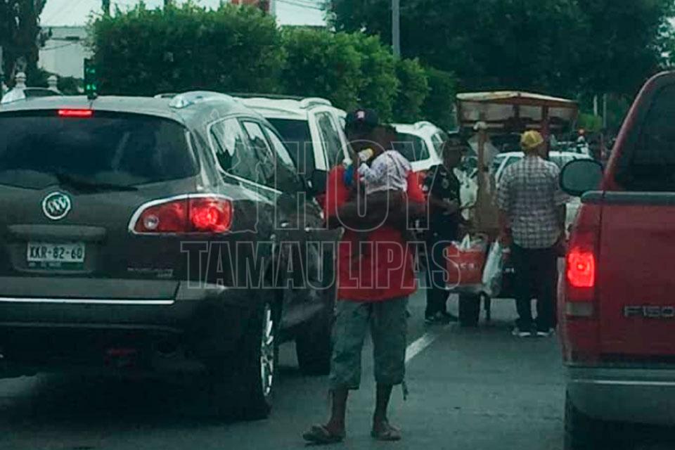 Migrantes usan a sus hijos para pedir dinero en Matamoros