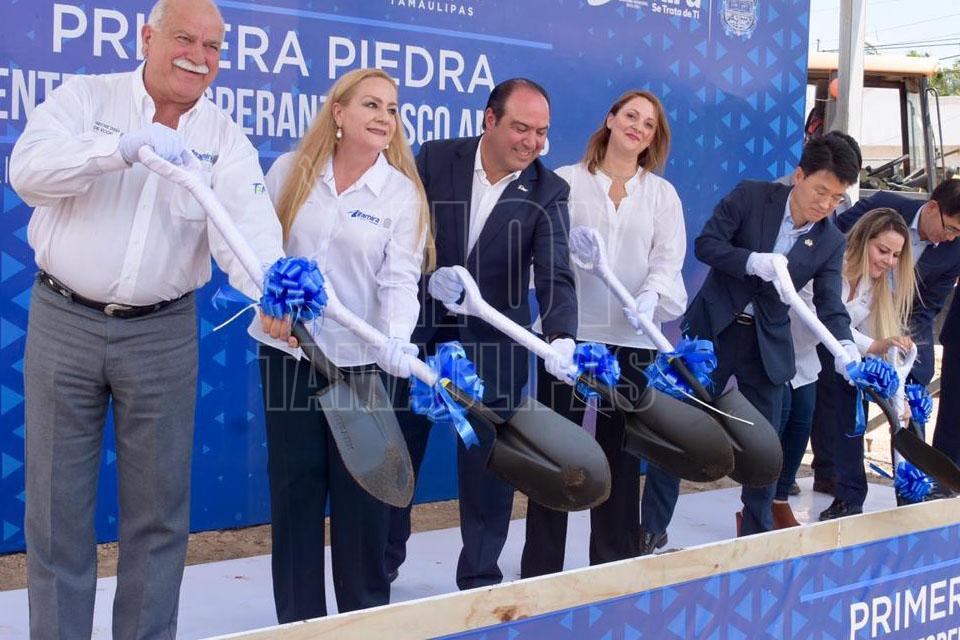Colocan Alma Laura Amparán y Mariana Gómez primera piedra del Centro de Esperanza POSCO Amigos