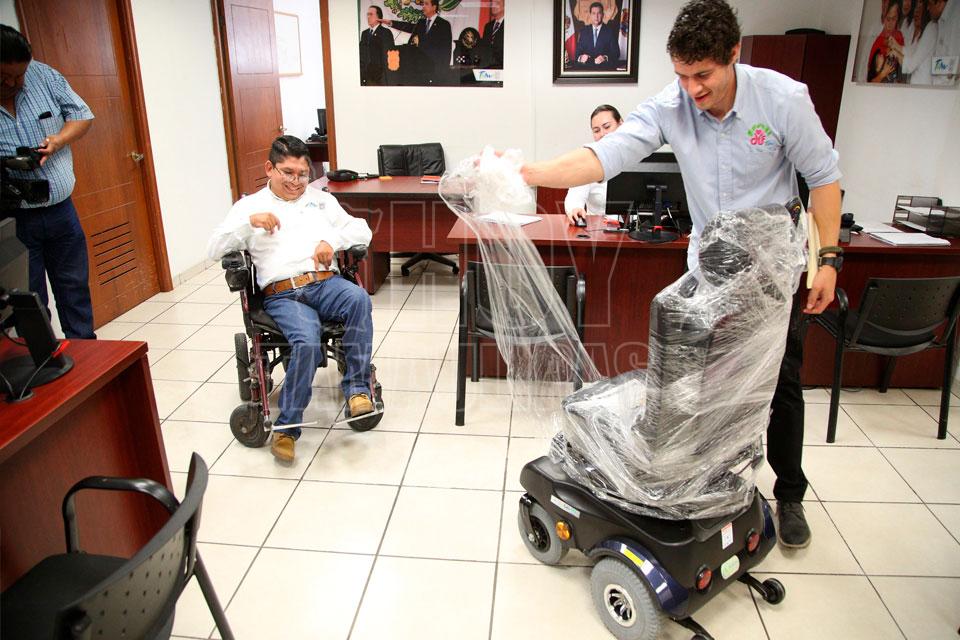 Entrega DIF Estatal silla de ruedas eléctrica a Juanito en Ciudad Victoria