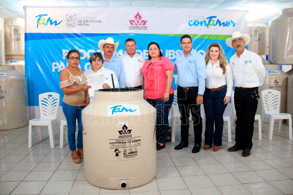 Entrega Sebien tinacos a familias de Burgos