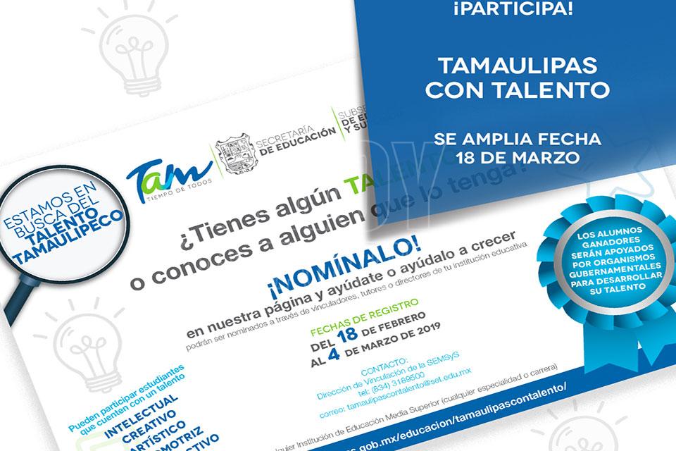 Amplían fecha del Programa Tamaulipas con Talento