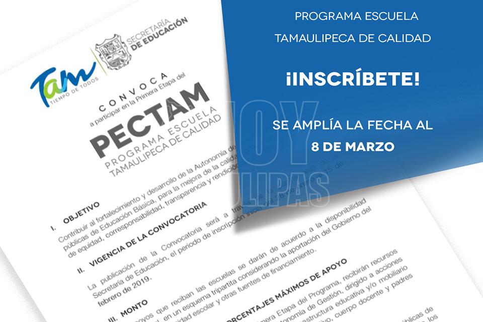 Se amplía fecha para inscribirse en Programa Escuela Tamaulipeca de Calidad