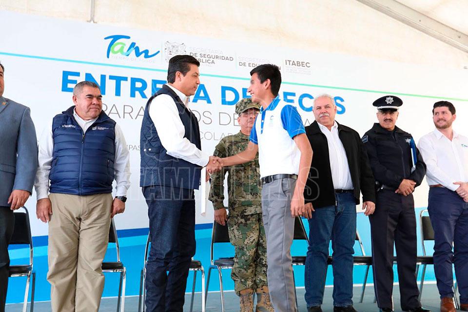 Gobernador de Tamaulipas entrega becas para hijos de policías estatales