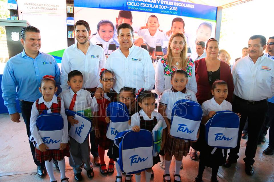 Entrega gobernador Francisco García paquetes escolares en Reynosa