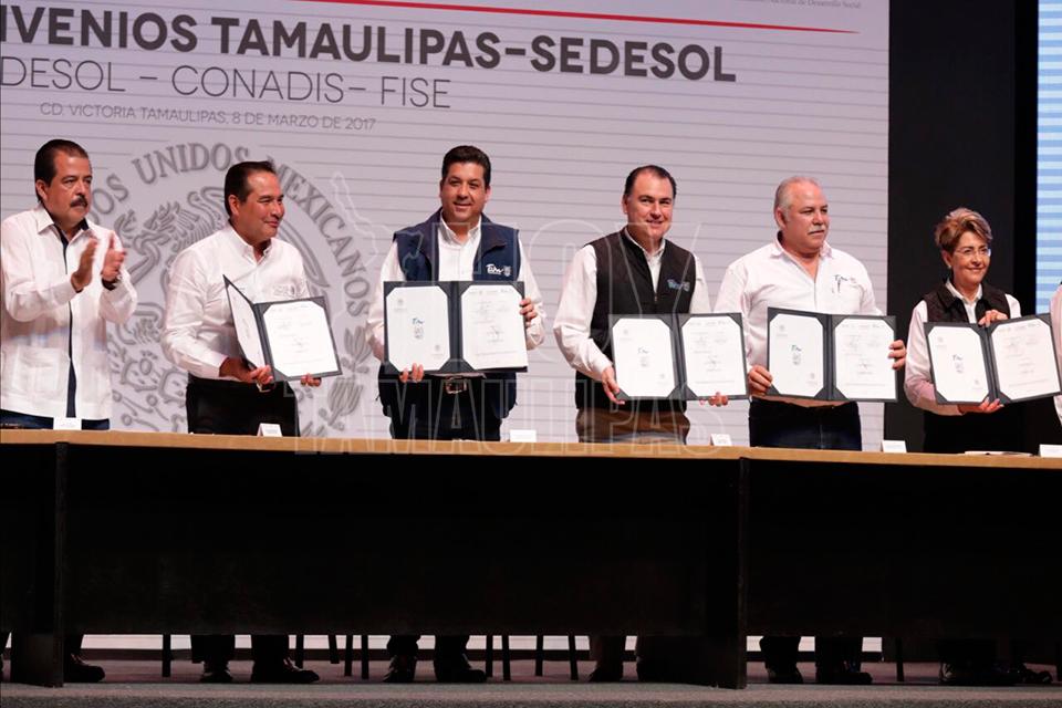 Firman Gobierno y SEDESOL tres convenios para beneficiar a tamaulipecos