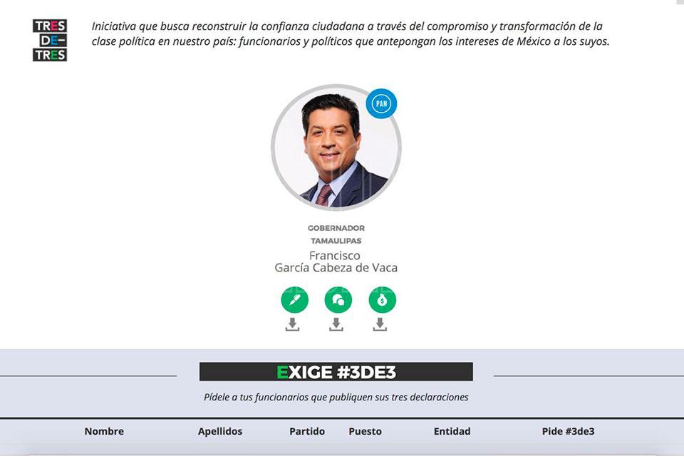 Gobernador Cabeza de Vaca presenta su declaración tres de tres