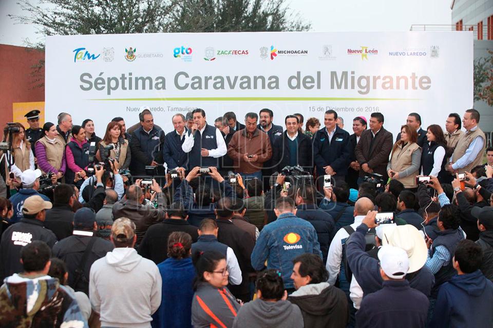 Reciben gobernadores de Nuevo León, SLP y Tamaulipas a paisanos en Nuevo Laredo