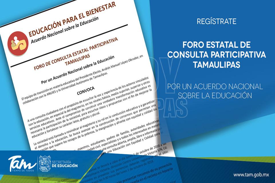 Invitan a tamaulipecos a participar en el Foro de Consulta Estatal Participativa