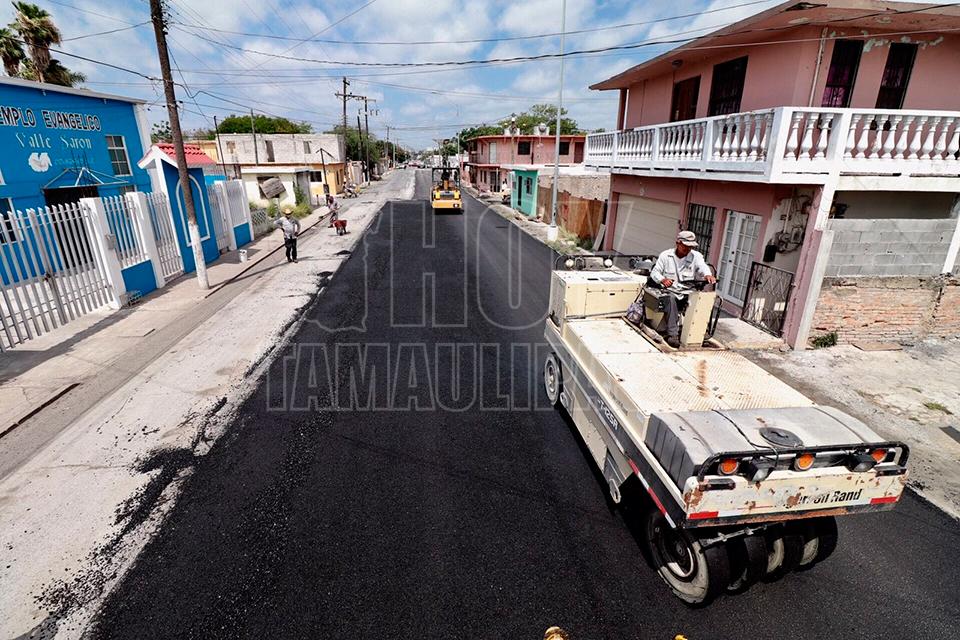 Despliega Municipio de Matamoros maquinaria y equipo para pavimentación y bacheo de calles