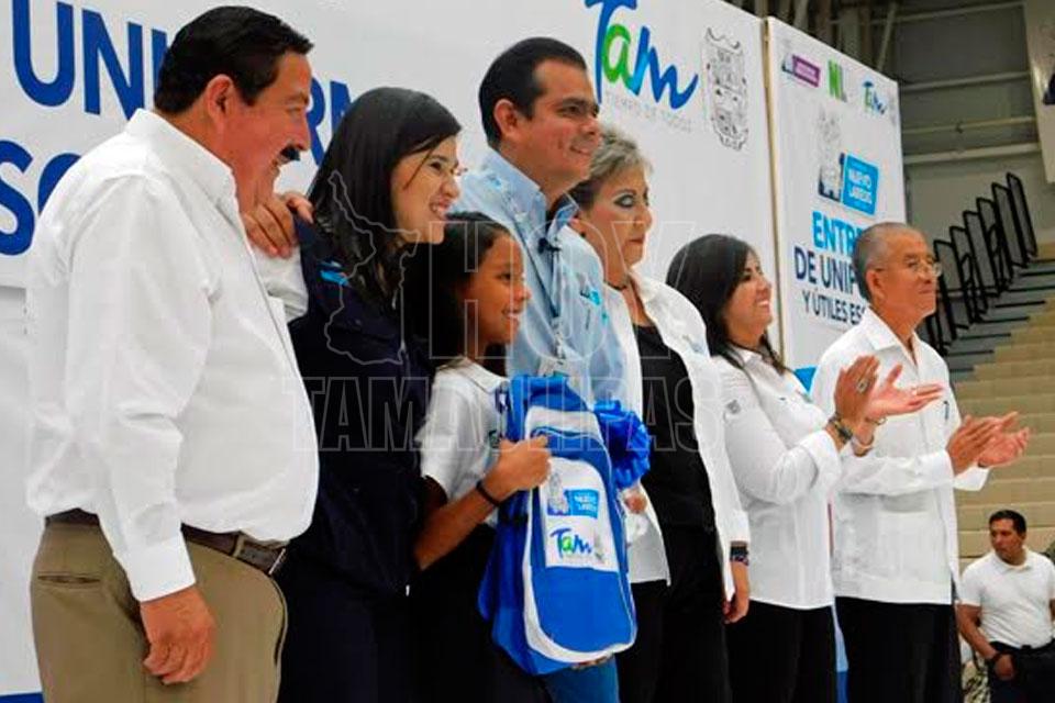 Dan a estudiantes de Nuevo Laredo uniformes y útiles escolares