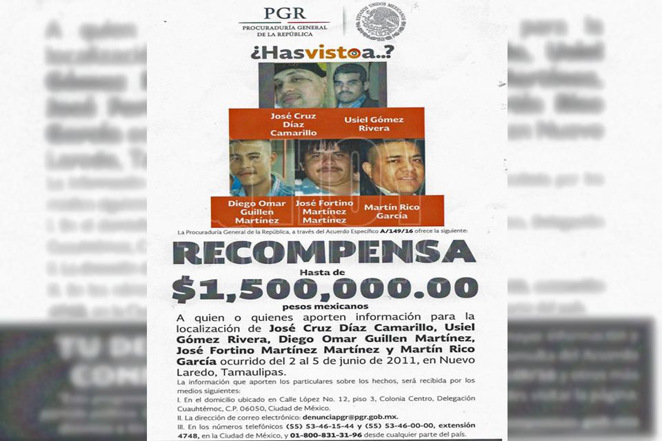 Ofrece PGR recompensa por desaparecidos en Nuevo Laredo