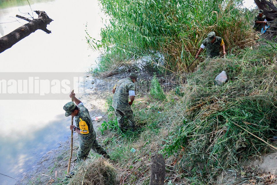 En Nuevo Laredo realiza Sedena limpieza del río Bravo