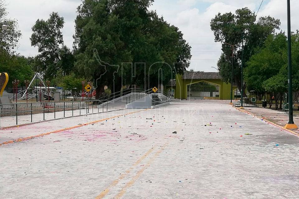 Dejan sucios parques de Nuevo Laredo con confeti y harina