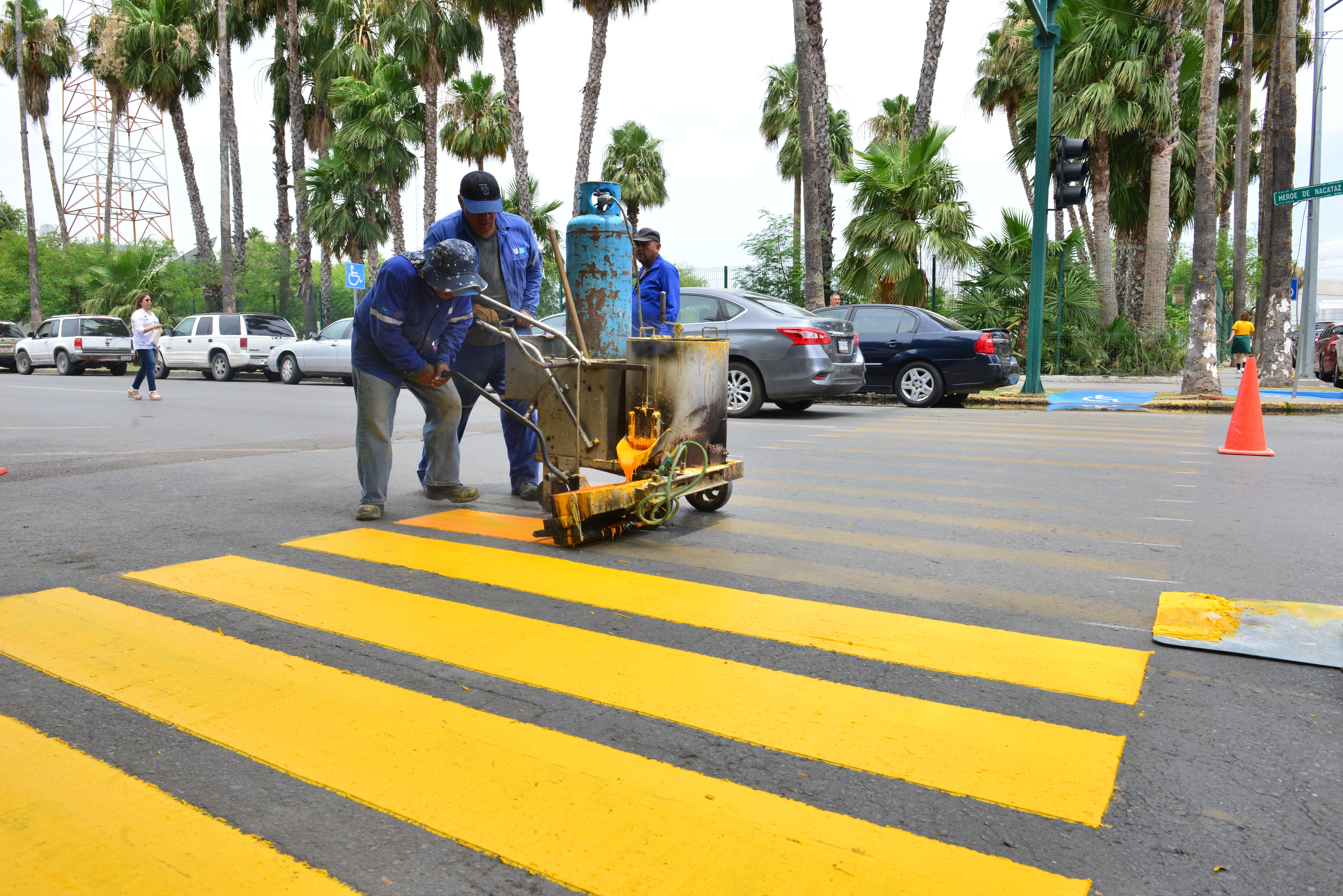 Continúan los trabajos de pintura en vialidades de Nuevo Laredo