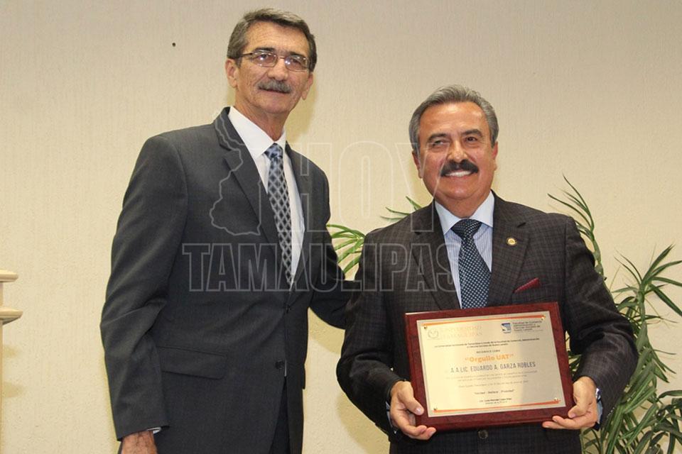 Entrega Rector reconocimiento Orgullo UAT en Nuevo Laredo
