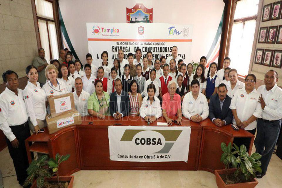 Entrega Ayuntamiento de Tampico y empresa COBSA computadoras a alumnos destacados