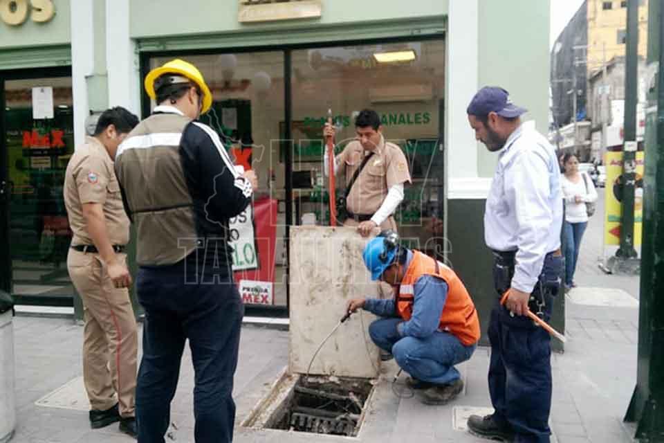 Supervisa Gobierno de Tampico registros y alcantarillas de la zona centro