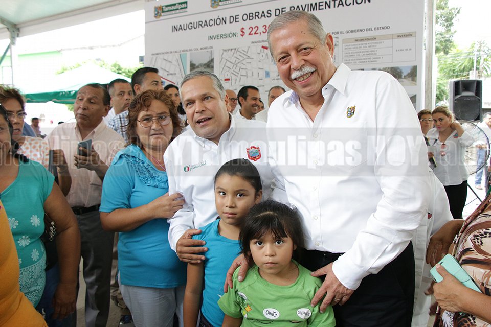 Inauguran Egidio Torre y Gustavo Torres pavimentación en colonia Morelos