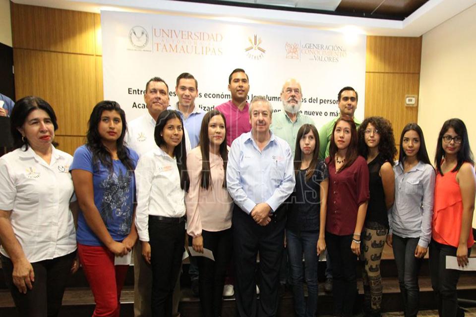 Entrega Rector becas a estudiantes hijos de docentes de la UAT