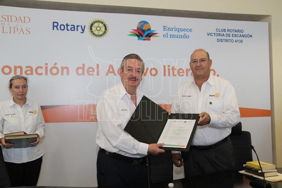 Rotarios Victoria Escandón donan acervo literario a la UAT